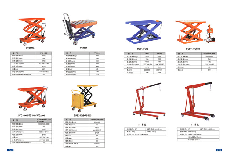 PTS1000、YTC300、DG01/DG02、DGS01/DGS02、PTD1000/PTD1500/PTD2000、DPS350/DPS500、吊机